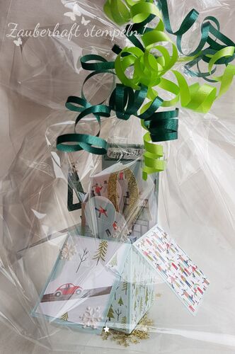 Du kannst die Karte zusammengefaltet im Umschlag verschenken oder wie ich in Klarsichtfolie.