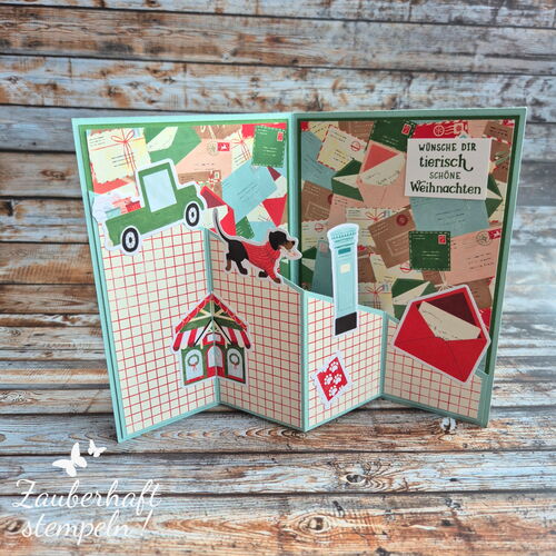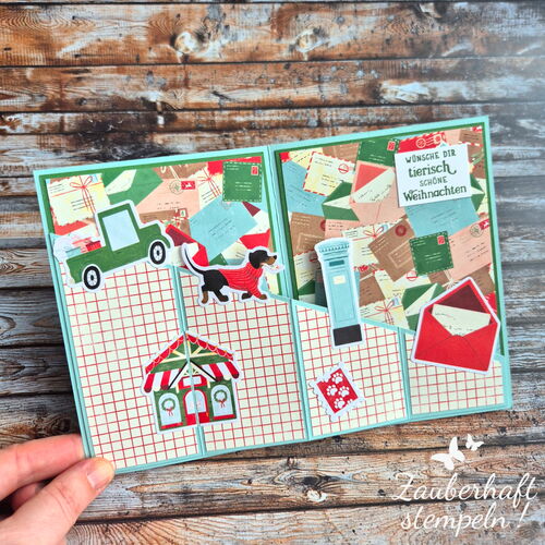 1 x Designerpapier ZUSTELLUNG VOM NORDPOL in den Maßen 20,2 cm x 11,1 cm (Zuschnitte und Falze siehe Video)