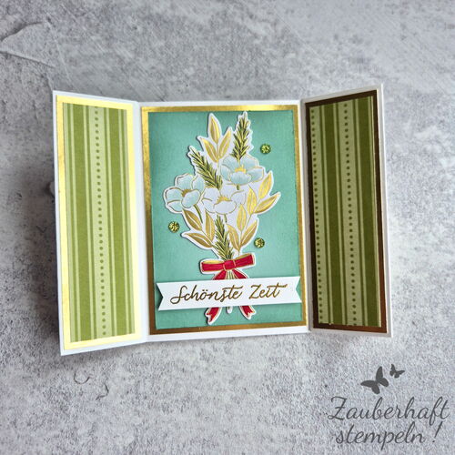 Lasst euch von eurer Kreativität leiten, probiert verschiedene Designerpapiere, Farben und Stempel aus und genießt die festliche Bastelzeit. Diese Karte ist schnell gemacht, zauberhaft anzusehen und macht garantiert Freude beim Verschenken.