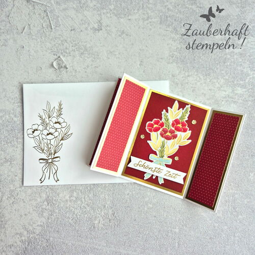 Weihnachten rückt immer näher, und auf Zauberhaft Stempeln wird es jetzt richtig festlich! Heute zeige ich euch eine meiner liebsten Kreationen: die Double Arrowhead Fun Fold Card – eine doppelte Pfeilspitzenkarte, die sowohl wie ein Stern als auch wie kleine Pfeilspitzen aussieht. Perfekt zum Aufstellen oder zum Verschenken im Gold-embossten Umschlag.