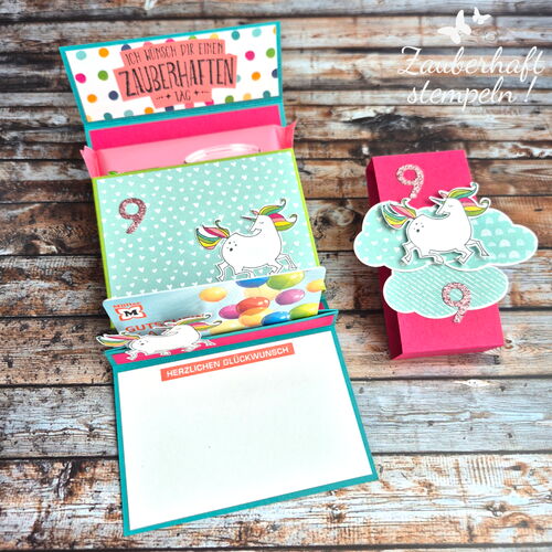 Ich liebe es ja, wenn Papier, Stempel und Anlass einfach perfekt zusammenpassen – und genau so ein Projekt ist diese Einhorn-Verpackung.