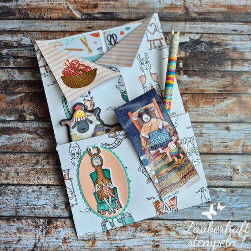 Die Karte selbst habe ich in einem Loaded Envelope verpackt, der schon für sich eine kleine Geschichte erzählt: mit Lesezeichen, Haftnotizen und liebevollen Details rund ums Thema Kreativität und Entspannung.