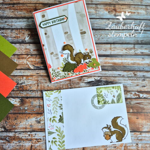 2 x Designerpapier FRÖHLICHER WALD in den Maßen 13,7 cm x 9,7 cm