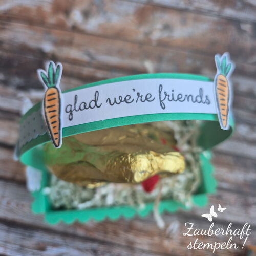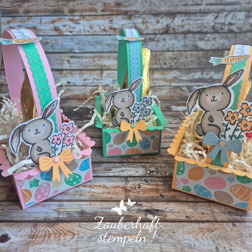 Ich habe das Körbchen ein klein wenig angepasst, da ich schon größere Hasen gekauft hatte. Ich habe das Körbchen in 3 verschiedenen InColor Farben - ROSÉ, PFIRSICH-CREME und GLÜCKSGRÜN gestaltet – so könnt ihr euch vielfälltig inspirieren lassen.