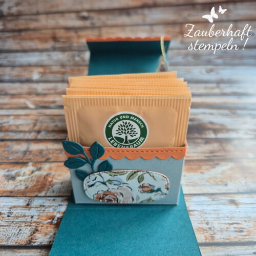Nun runden wir unser Set mit dem letzten Projekt ab: einer selbstgebastelten Teebox – als liebevolles Tee-Geschenk zum Gesundwerden.