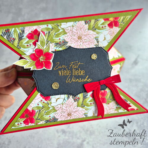 Heute wird’s wieder weihnachtlich bei zauberhaft-stempeln.de – mit einer ganz besonderen Kartenform: der Tricorn Fold Card. Sie sieht richtig raffiniert aus, ist aber super einfach zu basteln – perfekt also für die festliche Bastelzeit!